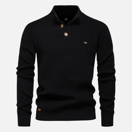 Theodore Wool Mock Neck Sweater | Ribbed Button Hip-Length Sweater
