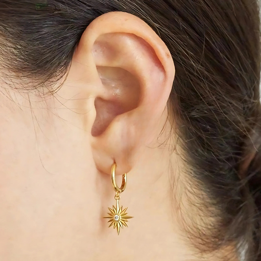 Gold-Plated Starburst Hoop Earrings with Zircon - Stella