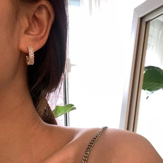 Gold Irregular Leaf Zircon Earrings - Stacey
